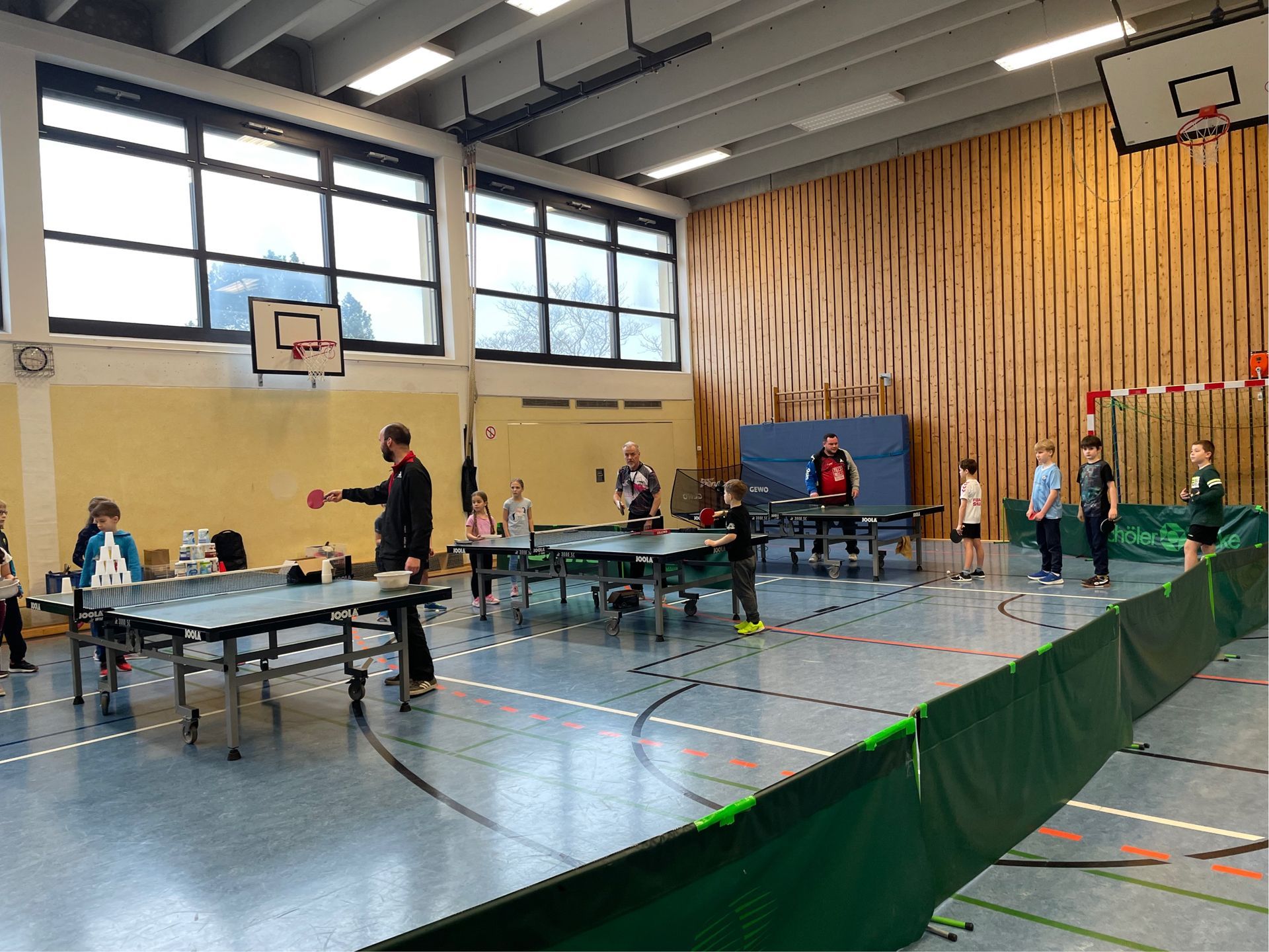 An der Schule fand am 26.02.2026 ein spannender Tischtennistag für die Klassen des 3. und 4. Schuljahres statt. Jede Klasse hatte eine eigene Stunde Zeit, um verschiedene Stationen rund um das Thema Tischtennis auszuprobieren. Ziel war es, spielerisch die Koordination, Reaktion und den Umgang mit Schläger und Ball zu verbessern. An den abwechslungsreichen Stationen konnten die Kinder zum Beispiel mit Luftballons erste Schlagübungen durchführen, Tischtennisbälle auf dem Schläger balancieren oder versuchen, mit gezielten Treffern eine aufgebauten Becher-Pyramide umzuwerfen. Durch diese Übungen wurden sowohl Anfängerinnen und Anfänger als auch Kinder mit ersten Vorerfahrungen gefordert und motiviert. Besonders beliebt war das freie Spielen an den Tischtennisplatten, bei dem die Schülerinnen und Schüler ihre neu erlernten Techniken direkt anwenden konnten. Unterstützt wurde der Tischtennistag durch eine Kooperation mit einem lokalen Tischtennisverein (TTC Villmar) sowie dem Tischtennismobil des Deutschen Tischtennis-Verbands. Die Trainerinnen und Trainer erklärten den Kindern grundlegende Techniken und sorgten für viel Spaß und Bewegung. Der Tischtennistag war für die Schülerinnen und Schüler der Senckenbergschule Villmar ein besonderes Erlebnis und hat bei vielen das Interesse am Tischtennissport geweckt.