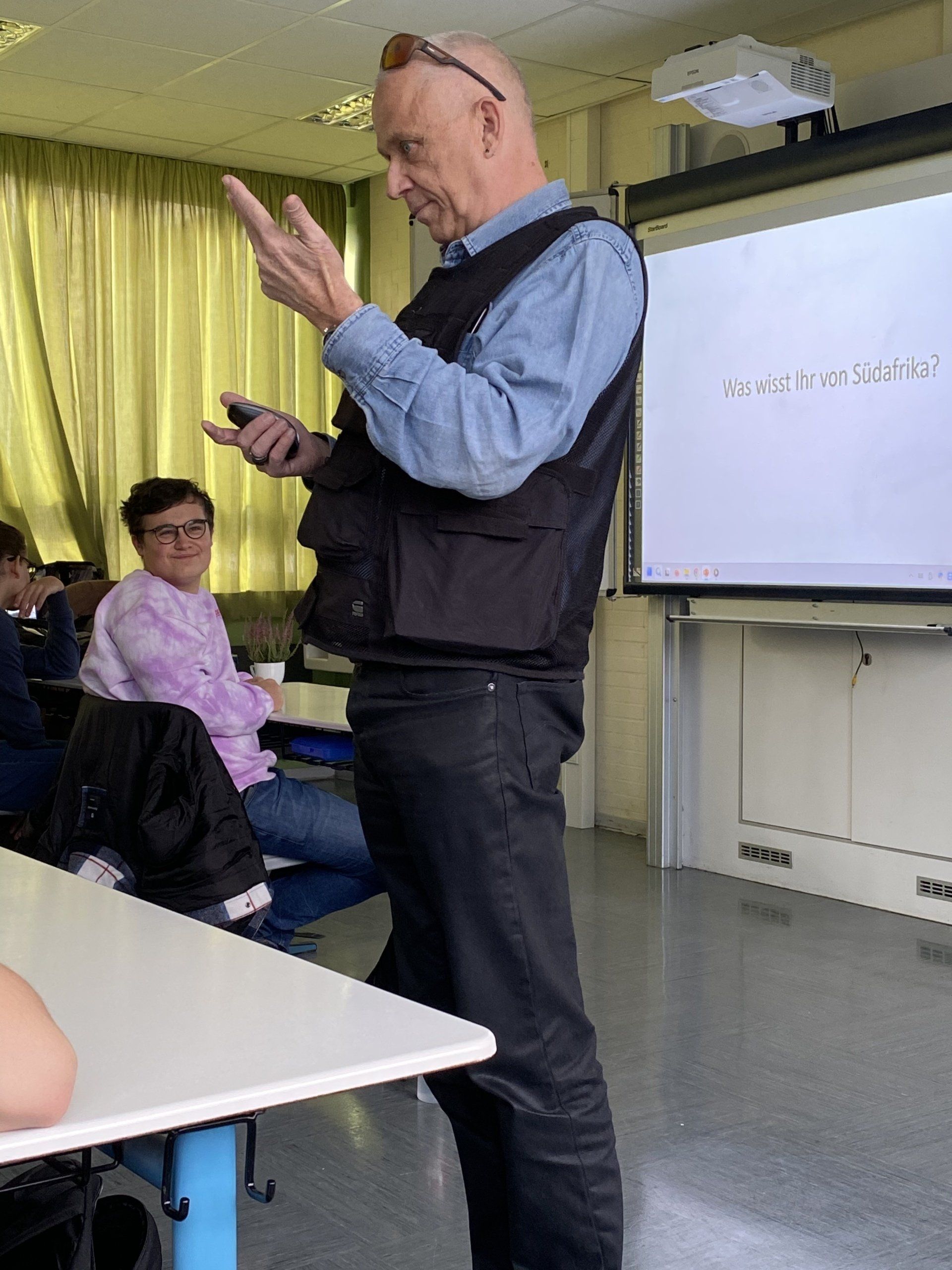 Im Rahmen des Themas „ South Africa“ war am 10.11.2022 Pfarrer Stefan Hippler im Englischunterricht der Klasse 10a zu Besuch. Er war schon zum zweiten Mal bei uns an der Schule und veranschaulichte an konkreten Beispielen und teilweise drastischen Videos und Erzählungen, wie sehr sich das Leben in Runkel von dem in den townships von Südafrika unterscheidet.