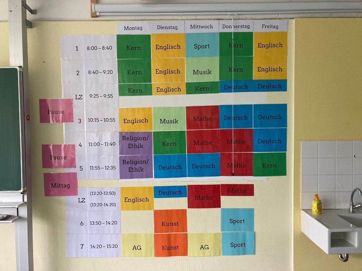 Über den Tag hinweg wechseln Unterrichtsstunden mit Lernzeiten sowie sportlichen, musischen und künstlerisch orientierten Angeboten ab. Die Besonderheit der Ganztagsklasse besteht zudem darin, dass sie eng mit der Schulsozialarbeiterin agiert. Auftretende Probleme können so zeitnah besprochen und thematisiert werden. Auch finden im Laufe des Schuljahres immer wieder einmal „Teamtage“ statt.