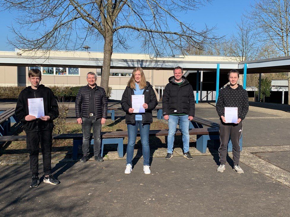 Im Rahmen einer kleinen Siegerehrung überreichten Schulleiter Ingo Nierfeld und Fachbereichsleiter Jan Ruckes Gutscheine an die erfolgreichen Schüler. Ingo Nierfeld würdigte die sehr guten Leistungen der Schüler. Auch Jan Ruckes beglückwünschte die drei Schüler und zeigte sich stolz über das Geleistete.