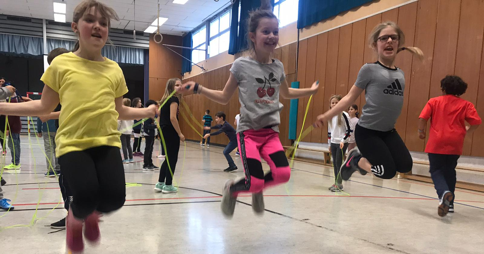 Kurz vor den Halbjahreszeugnissen ist es zur Tradition geworden, dass insbesondere die Grundschulen und Teile der Sekundarstufe (5. + 6. Klassen) sich körperlich bewegen und ein gesundes Frühstück auf dem Stundenplan steht. Den Anfang bildeten unsere Grundschüler aus Villmar. Hier traf man sich zusammen auf dem Pausenhof, um gemeinsam bei entsprechender Aufwärmmusik ein paar Runden auf dem Schulhof zu drehen. Anschließend wurden unterschiedlichste Angebote in den einzelnen Klassen für die Schülerinnen und Schüler im Stationsbetrieb durchlaufen. Kooperationspartner war an beiden Tagen das Tischtennismobil des Deutschen Tischtennisbundes (DTB) in Zusammenarbeit mit dem örtlichen Verein des TTC Villmar. Sie boten abwechslungsreiche Übungen an, um die Schülerinnen und Schüler für den Tischtennissport zu begeistern. Zudem war erneut ein vielfältiger Bewegungsparcours und „absolutes Highlight“ für alle Sportler in der Turnhalle aufgebaut. Darüberhinaus gab es diesmal die Möglichkeit Waveboards, Longboards, Inlineskates und Scooter auf dem Schulhof auszuprobieren. Rampen und Wippen wurden übersprungen und entsprechende „Moves“ durften auch nicht fehlen. Ein gesundes Frühstücksbuffet kam in den einzelnen Klassen natürlich auch nicht zu kurz und wurde ebenfalls theoretisch aufbereitet und im weiteren Unterricht vertieft. Am Schulstandort in Runkel nahm die 4. Jahrgangsstufe am „Skipping Hearts“ Projekt der Deutschen Herzsportstiftung teil. Die jungen Sportler erlernten in einem kurzweiligen Programm zunächst einzelne Grundsprünge kennen. Anschließend wurden ein paar Tricks ausprobiert und zum Abschluss stellten die Schülerinnen und Schüler ihr Können der 3. Jahrgangsstufe vor. Der zweite Fitnesstag in diesem Schuljahr findet für die Grundschüler anlässlich des 50-jährigen Jubiläums von „Jugend trainiert für Olympia“ am 27. Mai statt. In der Sekundarstufe I werden Sportaktionen kurz vor den Sommerferien durchgeführt.