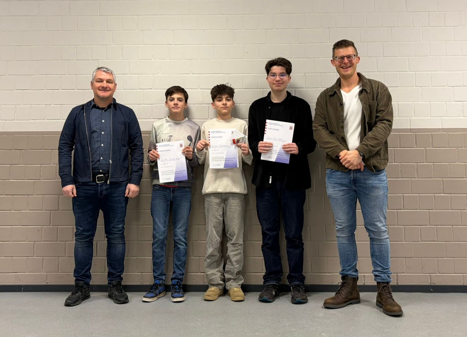 In diesem Schuljahr fand am 04.12.2025 zum 58. Mal der Mathematik Wettbewerb des Landes Hessen für alle Schülerinnen und Schüler der 8. Klassen statt. Insgesamt waren in einer Bearbeitungszeit von 90 Minuten, acht Pflichtaufgaben zu absolvieren. Zusätzlich mussten die Schülerinnen und Schüler zwei von vier Wahlaufgaben zur Bearbeitung auswählen. Es war eine Mischung an Aufgaben aus den Bereichen Kopfrechnen, proportionale Zuordnungen, Berechnung von Werten eines Terms, Prozentrechnung, Berechnungen im Dreieck, Konstruktion von Dreiecken, Symmetrie, logisches Denken und Oberflächenberechnung eines Würfels. Eine Besonderheit des Mathematikwettbewerbs ist, dass alle Aufgaben ohne Taschenrechner sowie ohne Formelsammlung bewältigt werden müssen, was das mathematische Talent der drei Schulsieger umso deutlicher hervorhebt. In diesem Jahr haben zwei Kurse Aufgaben des Formats B und zwei Kurse Aufgaben des Formats C bearbeitet. In der Aufgabengruppe B wurde Janne Scholz mit 44,5 Punkten Schulsieger. Dahinter hat sich Dimitrios Arampatzoglou mit 41,5 Punkten den zweiten Platz gesichert. In der Aufgabengruppe C hat sich Jan Hartmann gegenüber den anderen Schülerinnen und Schülern mit ebenfalls 41,5 Punkten durchgesetzt. Die drei Schüler nehmen am 4. März an der zweiten Runde des Mathematik Wettbewerbs an der Fürst-Johann-Ludwig Schule in Hadamar teil und versuchen, sich den Titel „Sieger des Mathematik Wettbewerbs auf Kreisebene“ zu sichern. Im Rahmen einer Siegerehrung überreichten der Schulleiter Ingo Nierfeld und der Fachbereichsleiter Mathematik Philipp Will die Schulsiegerurkunden sowie Gutscheine zur Anerkennung der Ergebnisse. Ingo Nierfeld würdigte die sehr guten Leistungen der Schüler. Auch Philipp Will beglückwünschte und zeigte sich stolz über das bisher Erreichte. Die Schulgemeinde der Johann-Christian-Senckenberg Schule drückt die Daumen und hofft auf gute Ergebnisse bei der 2. Runde.